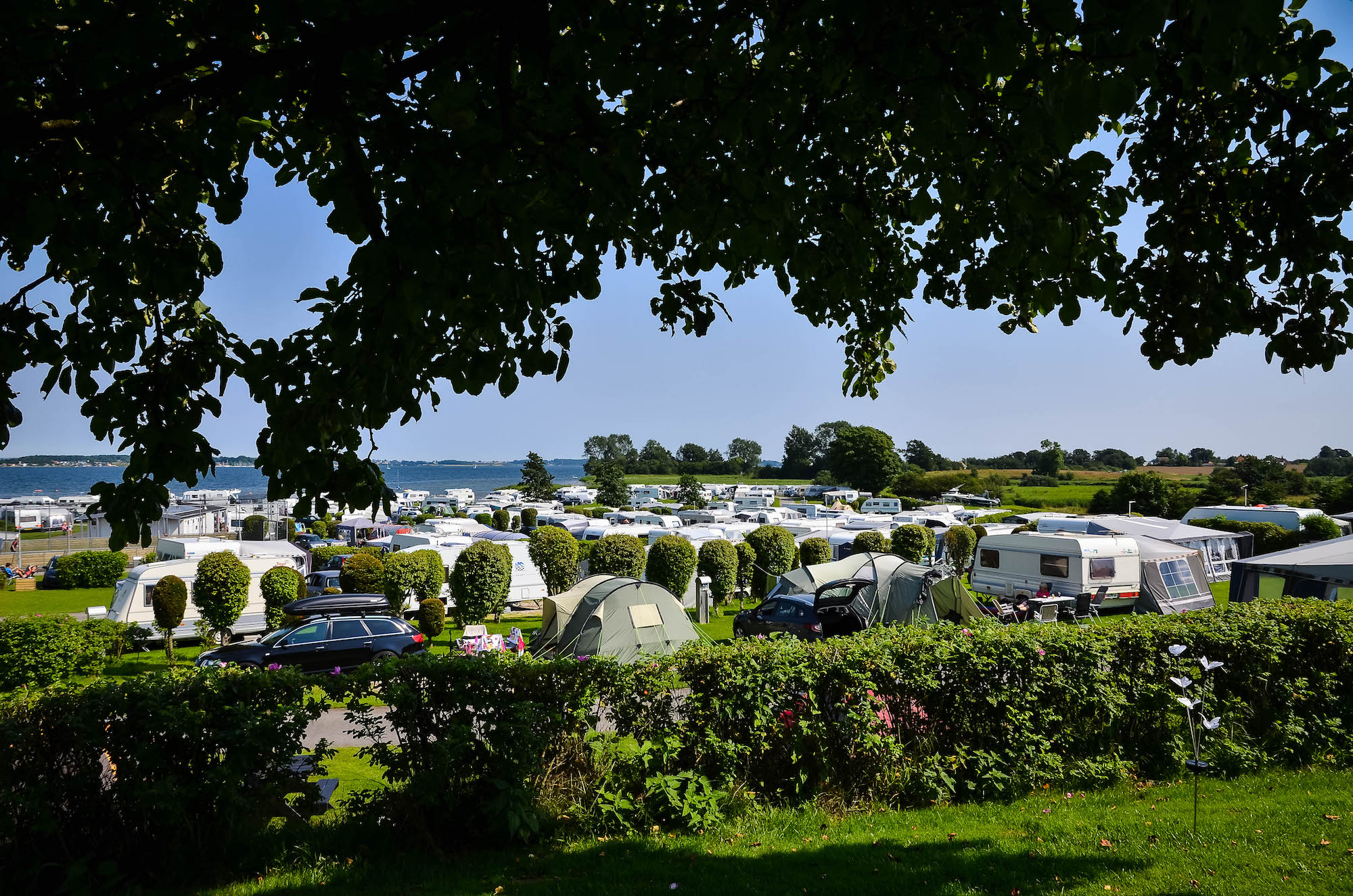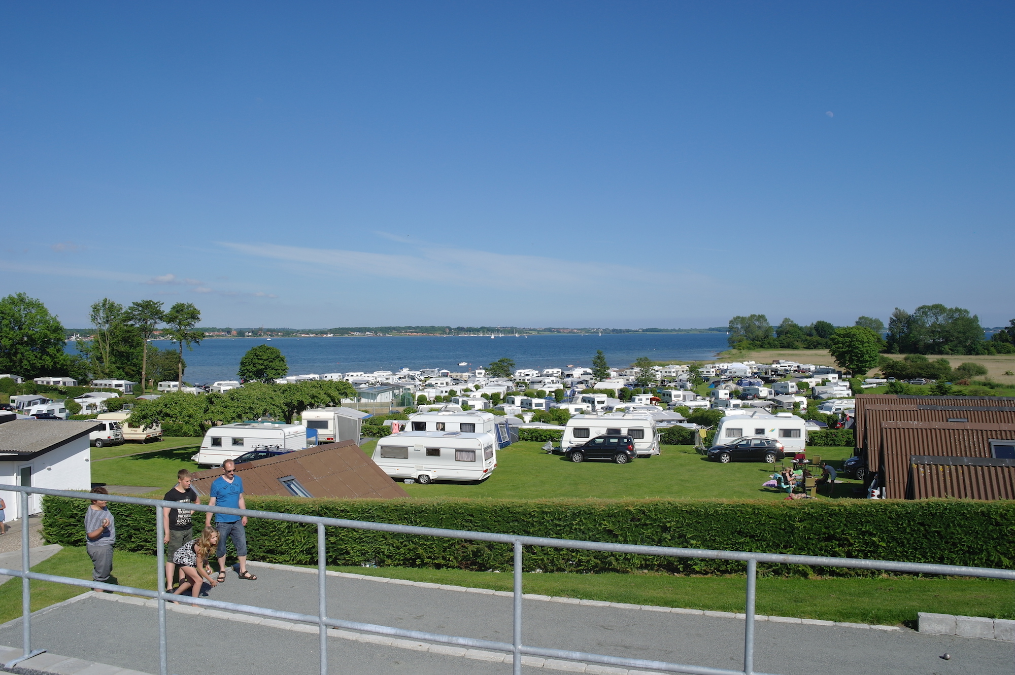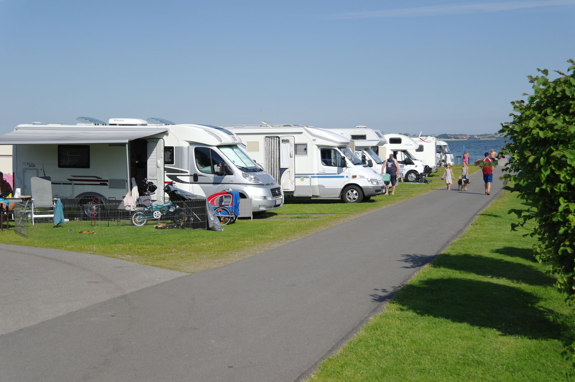 Och när vi säger vid foten av - så menar vi det. Du kan bokstavligen placera ditt rullande semesterhem så att du kan doppa fötterna i det våta elementet bara genom att öppna dörren till husvagnen, vilket är en ovanlig syn på en dansk campingplats.