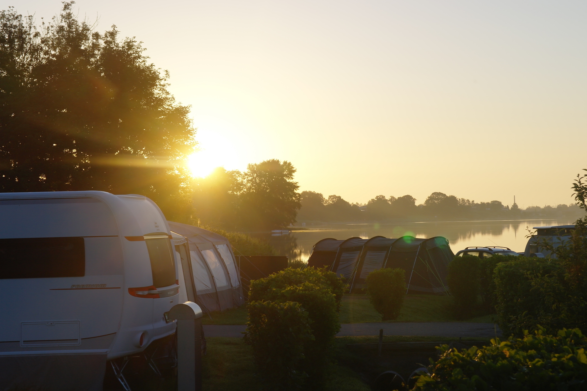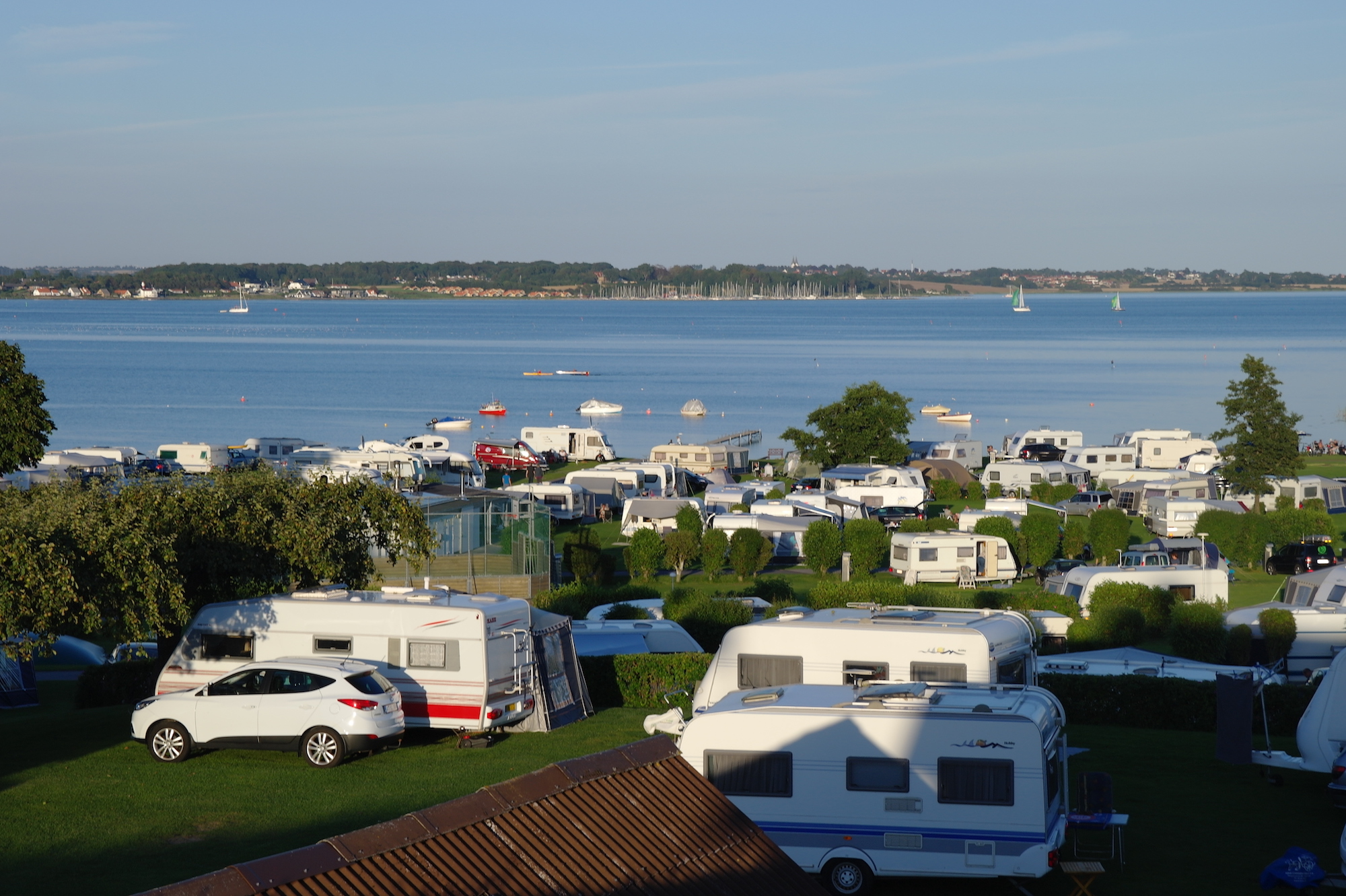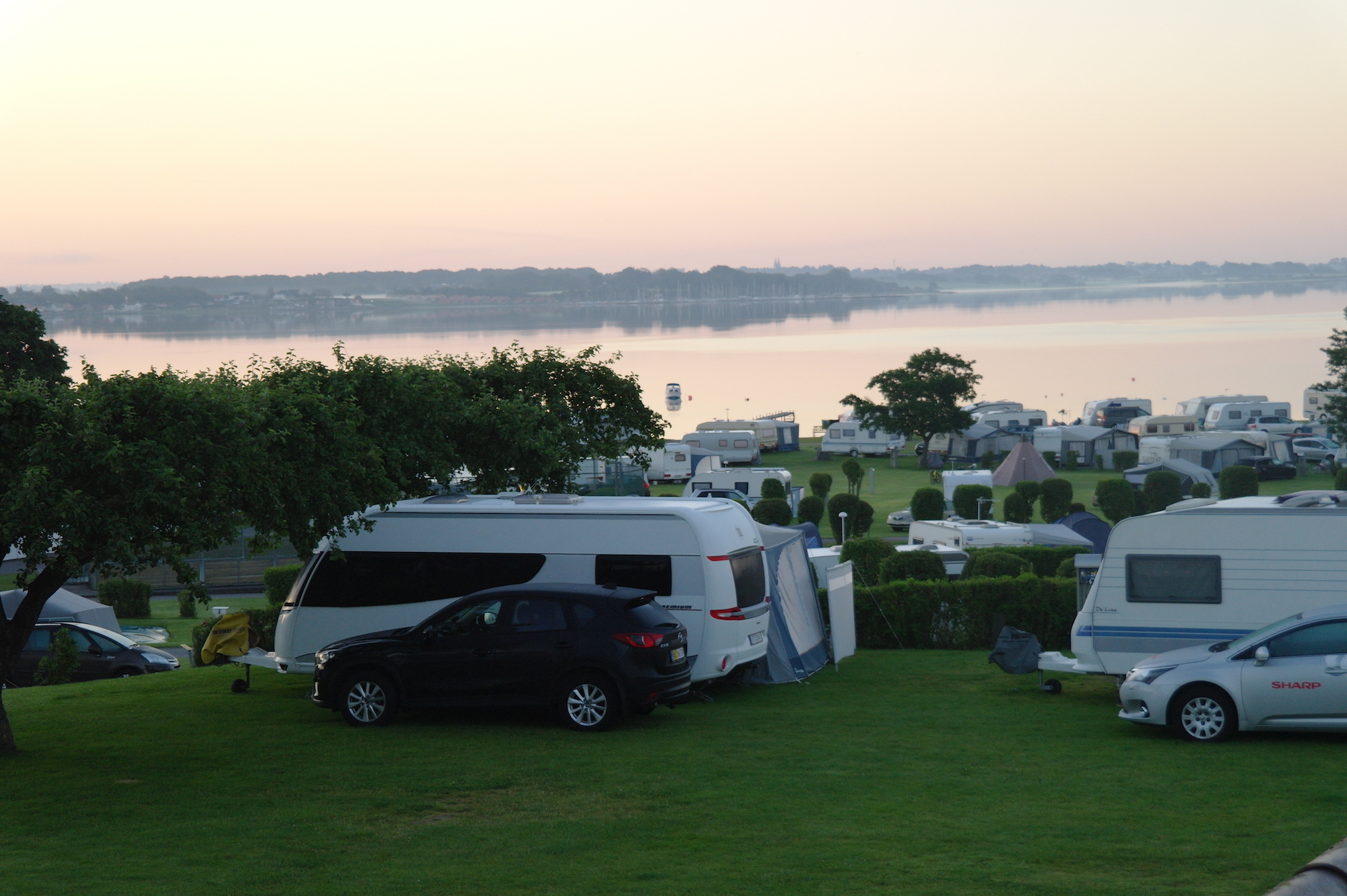 Och när vi säger vid foten av - så menar vi det. Du kan bokstavligen placera ditt rullande semesterhem så att du kan doppa fötterna i det våta elementet bara genom att öppna dörren till husvagnen, vilket är en ovanlig syn på en dansk campingplats.