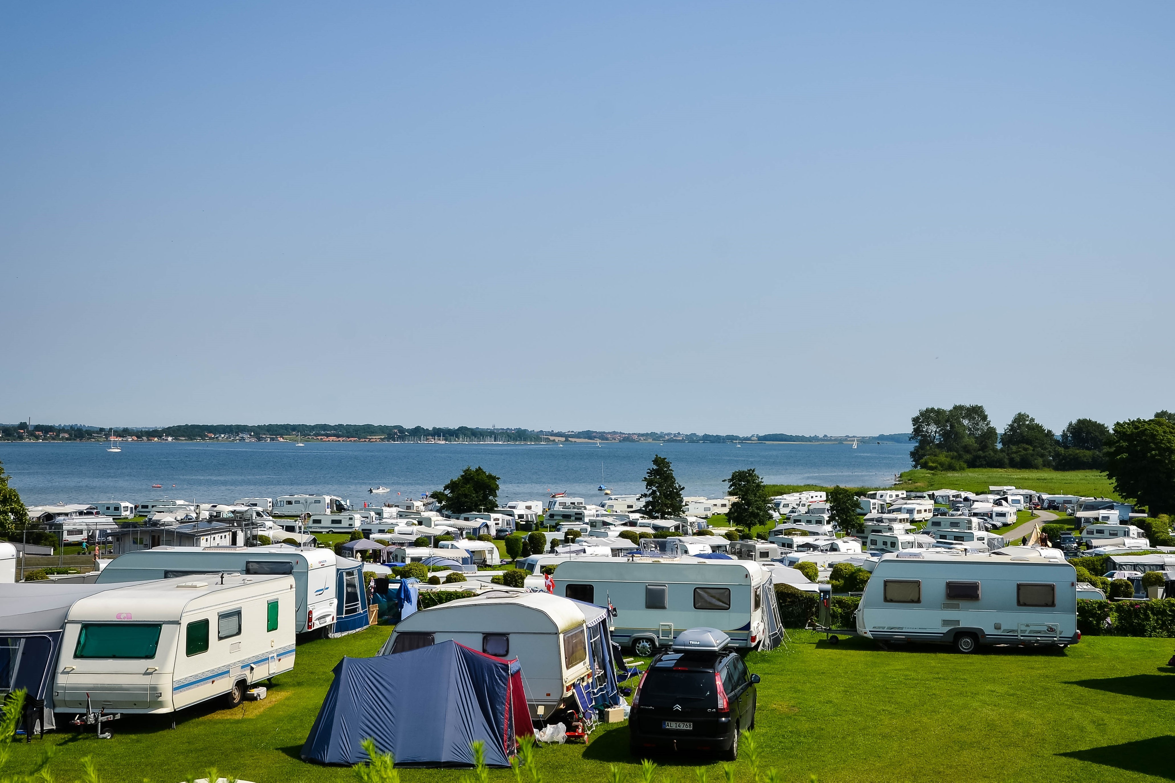 Ställ husvagnen bara några meter från vattenbrynet. Det är möjligt på Lærkelunden Camping vid Gråsten - en plats med ljus, luft, vatten och fantastiska faciliteter.