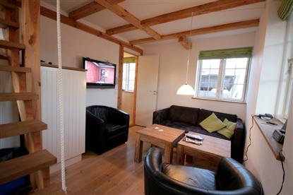 Vardagsrummet känns som stugans minsta "rum", vilket sannolikt beror på att man här har tak över huvudet till skillnad från de övriga rummen där det är högt i tak. Å andra sidan saknas inget här ? mjuk soffgrupp, platt-tv av ansenlig storlek samt DVD-spelare.
