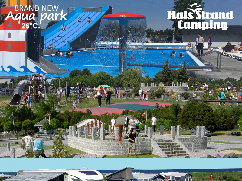 Hals Strand Camping är en fantastisk campingplats med en nyöppnad utomhus Aqua Park med uppvärmt badvatten, tre pooler, surf hill-rutschkana, bubbelzon, barnpool och vattenfall. Dessutom finns en solterrass med solstolar som bjuder in till total avkoppling. När hungern eller törsten gör sig påmind kan ni välja mat från Bake-Off-butiken, Grill & Glassbaren, njuta av en god middag i restaurangen eller ta en drink i puben.
