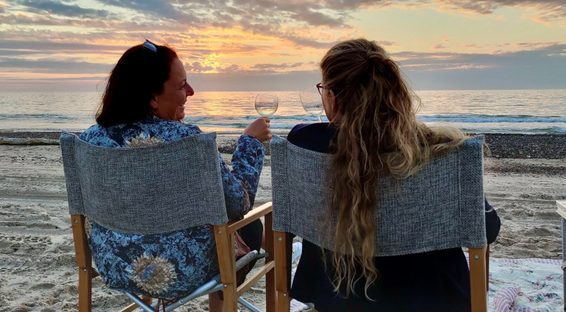 Från campingen går en stig direkt till havet – perfekt för ett morgondopp. Stranden är utmärkt för bad. Vattnet här är oftast en grad varmare än på grannstränderna, tack vare den långgrunda stranden.