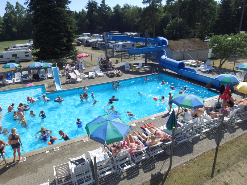 Gratis uppvärmd pool med stor vattenrutschbana, fyra åldersanpassade lekplatser med bland annat två hoppkuddar och ett stort lekslott, stort boll- och lekområde samt inte minst klappgetter som gärna vill bli matade och klappade.
