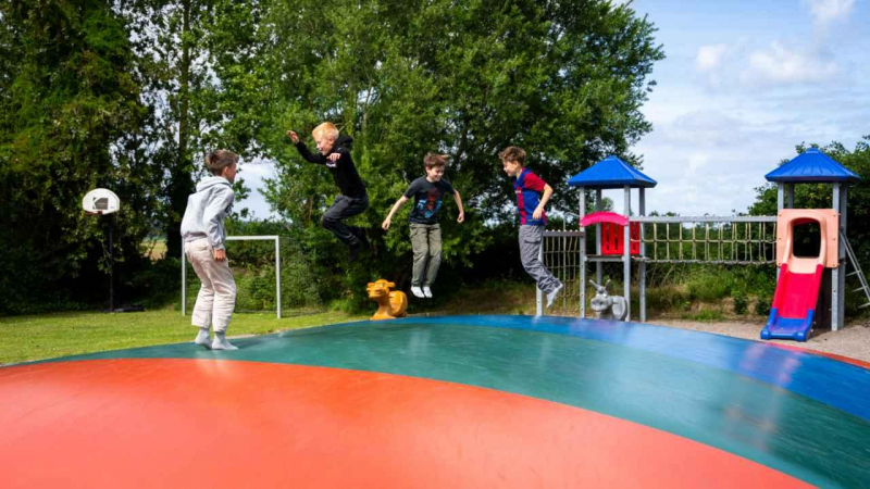 Dessutom är det nära till poolområdet och hoppkudden.