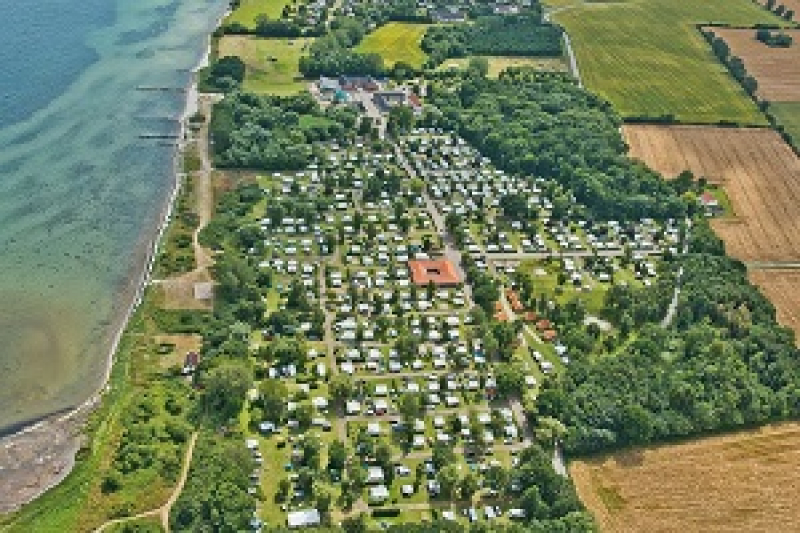 Campingplatsen ligger mitt i den vackra fynska naturen – med utsikt över Stora Bält från stranden. Dessutom finns här en riktigt bra restaurang och massor av lekplatser för barnen.