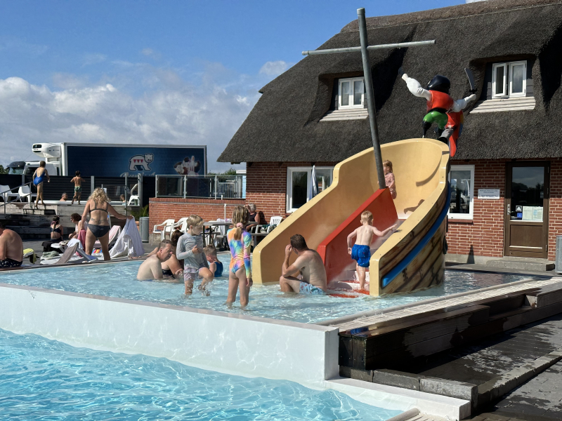Ny, fin vattenrutschkana för våra minsta vattenälskare. Rutschkanan har pirattema och bjuder in till massor av lek.