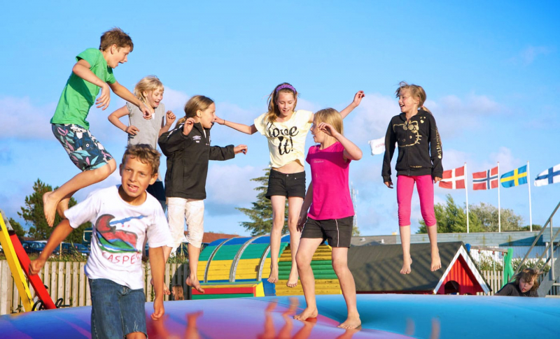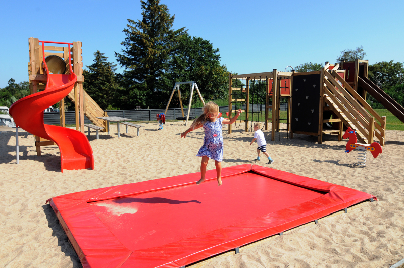 Den stora barnvänliga lekplatsen har något för alla. Ta dig upp i borgen, klättra i nätet eller testa den stora hoppkudden. Här finns studsmattor, linbana, klättertorn, gungdjur och mycket mer.