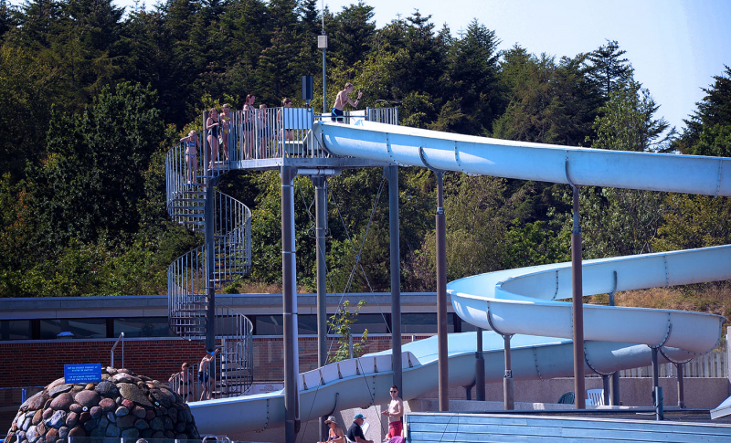 Både barn och vuxna uppskattar det stora badlandet med tre pooler. Här finns allt från bassänger för de allra minsta till den stora vattenrutschbanan för de modiga, små grottor och vattenfall – ja, allt du kan önska dig.
