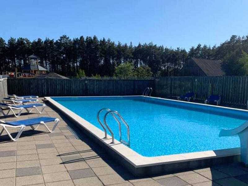 Vi erbjuder både inomhuspool och utomhuspool. Stor lekplats med flera hoppkuddar. Om du vill tävla kan du utmana dina nära och kära i: Boule, fotboll, tennis och minigolf.