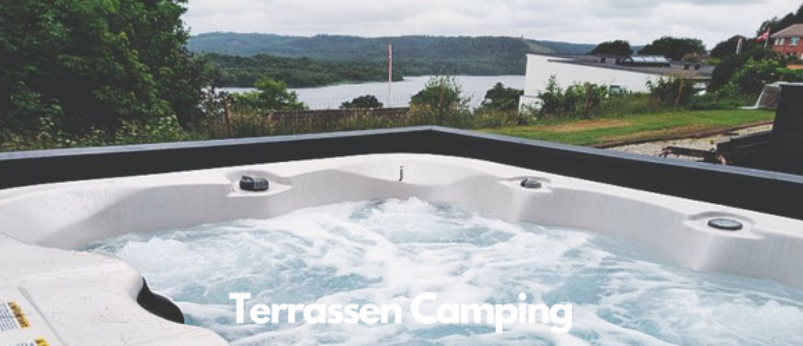 Hos Terrassen Camping & Hytteferie kan du välja mellan tre olika mobilhem. Det minsta har fem sovplatser och lockar med privat utomhusspa och fantastisk utsikt.