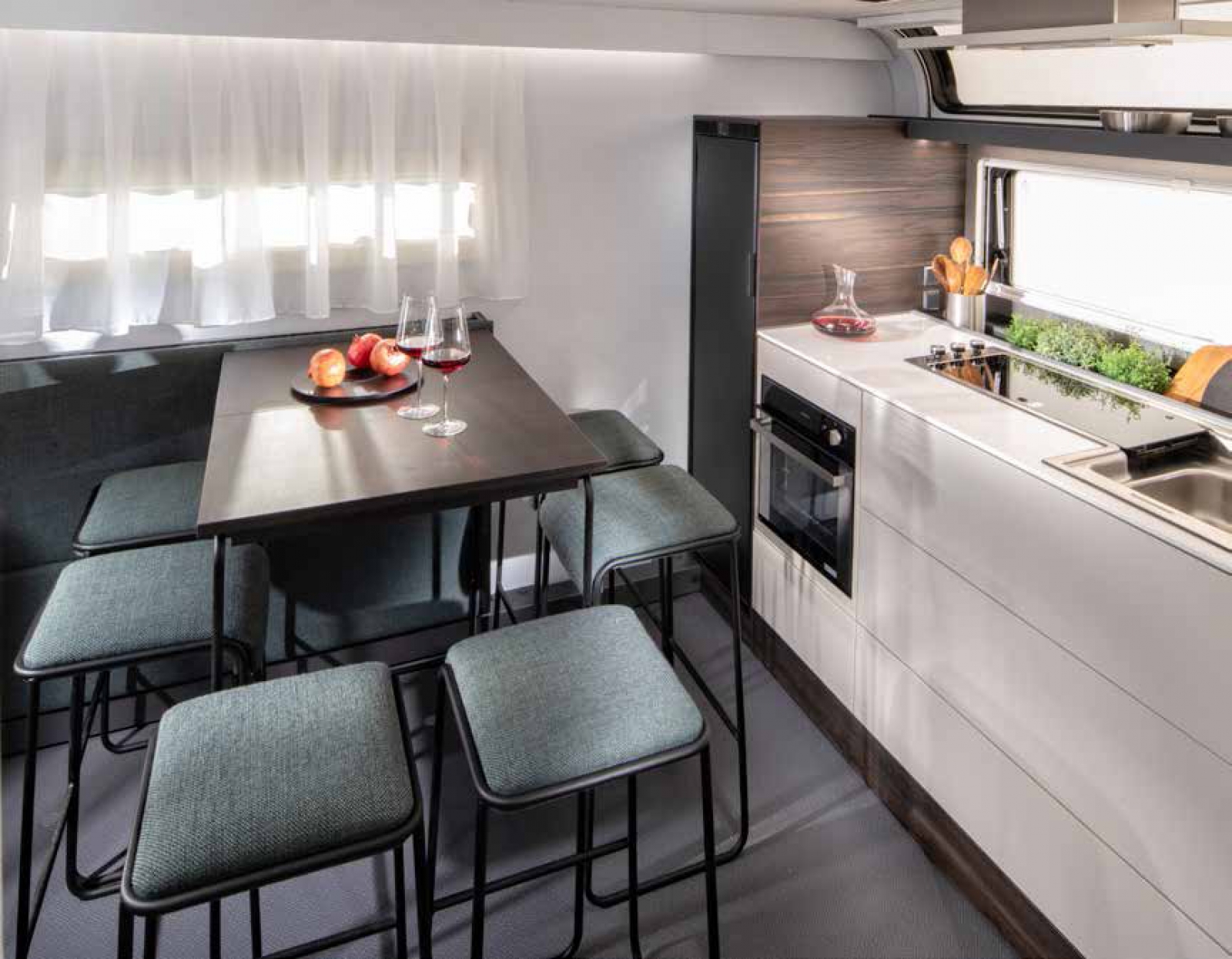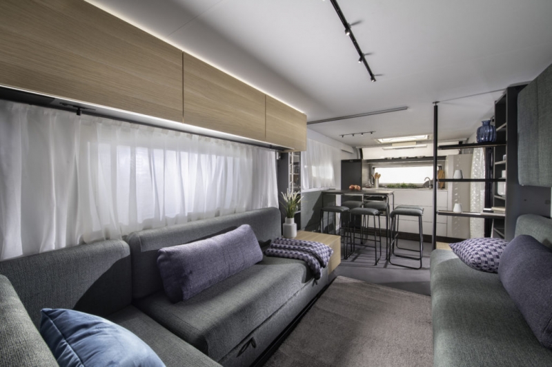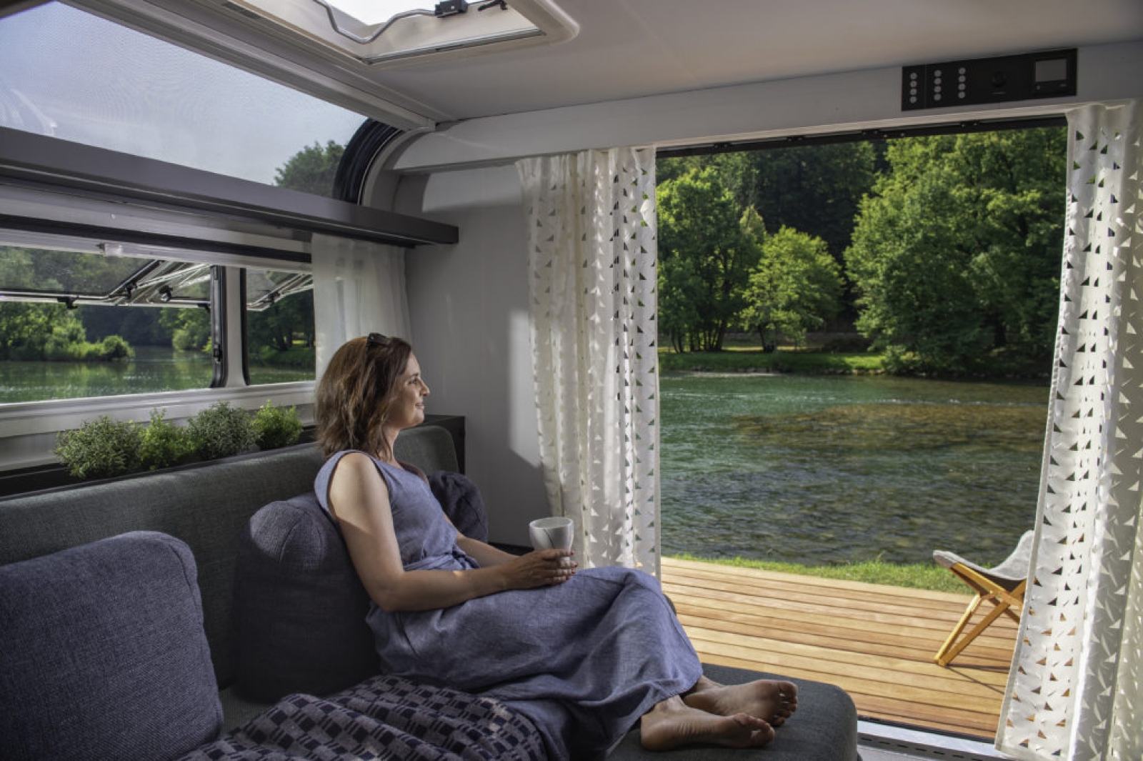 Det har lagts stor vikt vid detaljerna med inbyggda fönster i platt design, takfönster både fram och bak, och så finns det inbyggd mjuk LED-belysning som fungerar som förtältslampa och elegant framhäver vagnens ikoniska form.