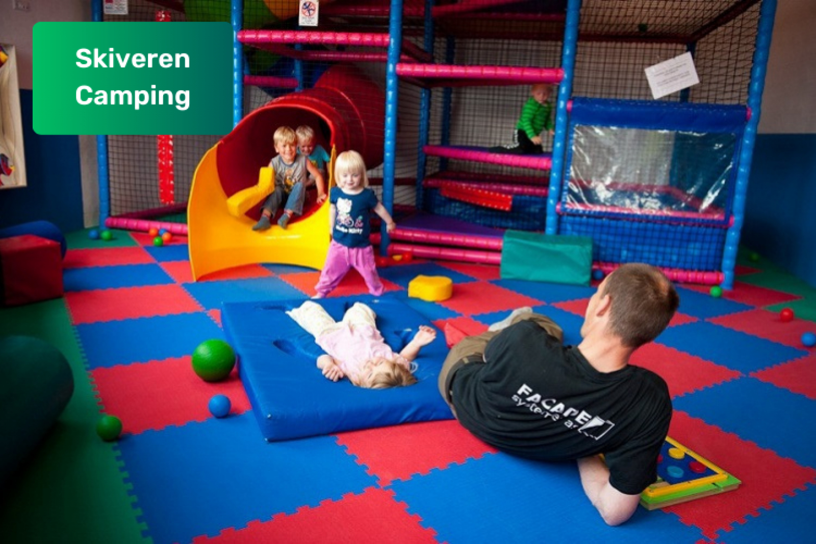 Hos Skiveren Camping vid Skagen har de ett inomhuslekland för barn – främst riktat till de allra minsta, som kan ha roligt i trygga omgivningar. Här kan de små testa rutschkanor och ett mindre klätterrum.