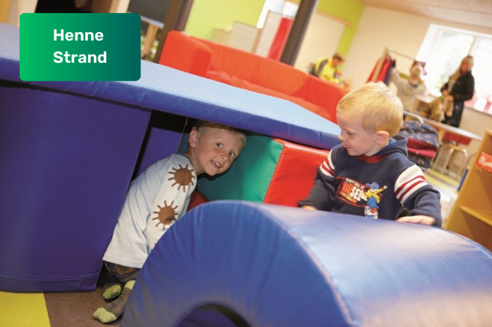 Om ni åker till Henne Strand vid västkusten kan ni ha roligt i "Villa Play". Här kan ni mysa med lek och spel – och det finns även ett tv-rum där man kan sätta på en film. Lekerummet är främst inrett för små barn.
