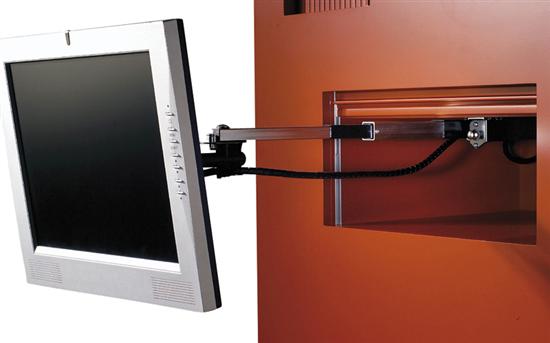 Den andra serien, MEDIO, är utdragsfästen för TV-skåpet. I denna serie finns både modeller för hängande och stående montering. Alla MEDIO-fästen har både tilt- och vridfunktion, och klarar en 17-tums skärm upp till 8,5 kg.