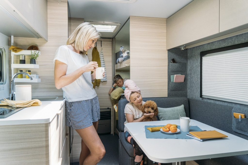 – Med de nya materialen har fabrikens designers minskat vikten på vissa av möbeldelarna samt på de invändiga vägg- och takskivorna, förklarar Per Højgaard från ADRIA DANMARK och fortsätter: