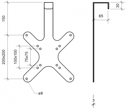 Skruvmått: 75x75mm - 100x100mm - 200x200mm
