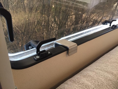 Detta smarta TV-fäste sätts helt enkelt på fönsterramen och fönstret kan stängas i transportläge.