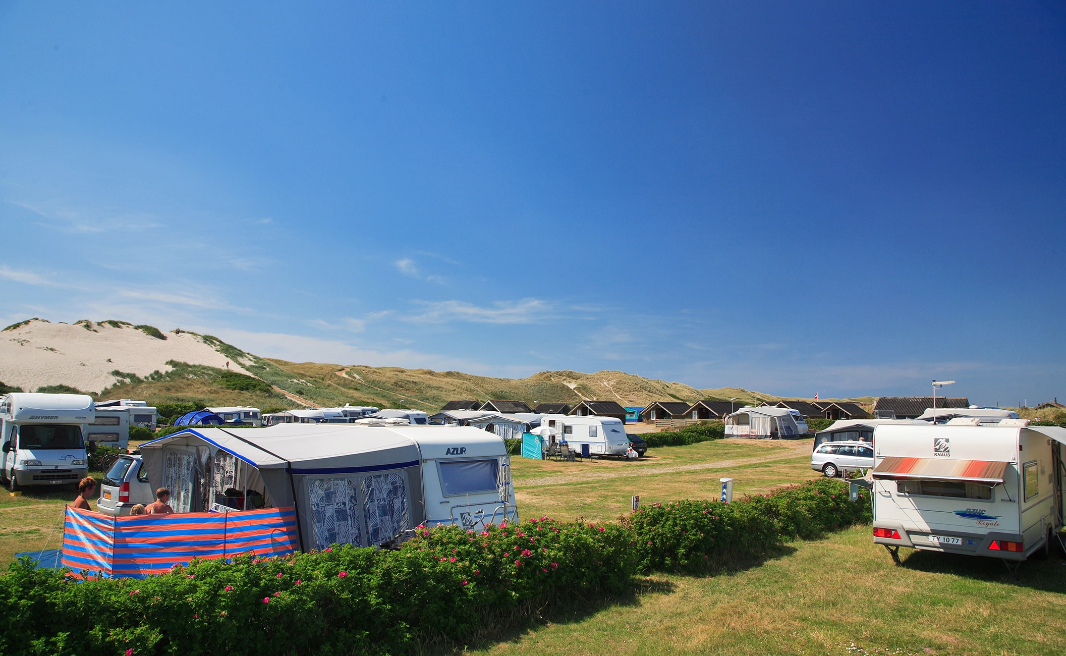 DANCAMPS Nordsø ligger unikt med vatten på båda sidor, med havet i väster och Ringkøbing Fjord i öster. Här finns en härlig vit sandstrand så långt ögat kan nå och höga klitter med möjlighet att ligga i lä när man är på strandutflykt. Om du vill uppleva lite stadsliv ligger Hvide Sande bara 7 km från campingen. Här finns massor av möjligheter för shopping och att äta något gott.