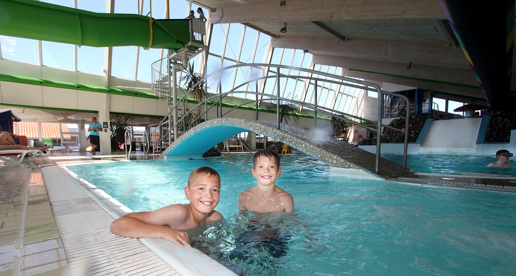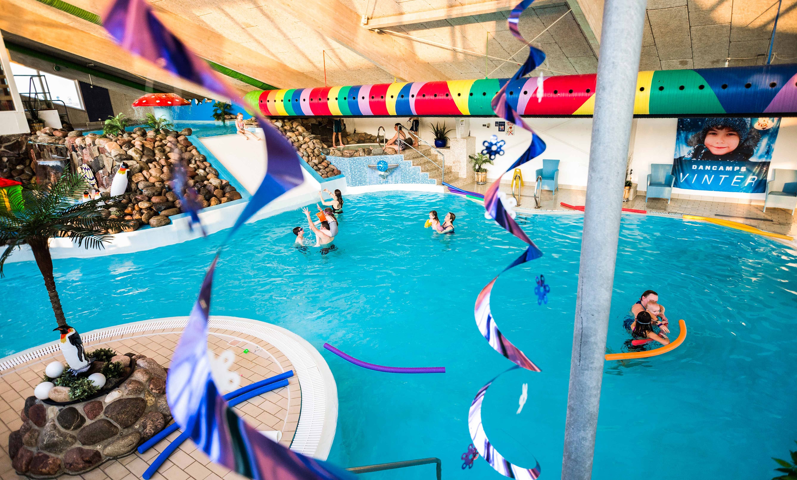 Här kan man njuta av en inomhus badsemester, även när vädret inte är att lita på. På DANCAMPS Nordsø kan man få en känsla av sydliga breddgrader och tropiska temperaturer. Här finns också den populära vattenrutschbanan som slingrar sig ut ur badlandet och in igen, samt en barnpool på 29 grader och en nöjespool. Allt som allt 100% garanti för en fantastisk campingsemester med barnen.