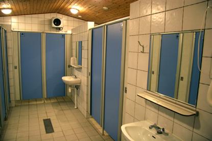 Faciliteterna är samlade i en stor byggnad som innehåller toaletter, kök, information, familjebadrum, tvättstuga och ett litet TV-rum. Totalt sett kan faciliteterna kännas något begränsade med tanke på campingens storlek, men på grund av bevarandeplaner och liknande får platsen helt enkelt inte byggas ut mer. Under vårt besök i högsäsongen fungerade allt bra - vi såg inte många köer.