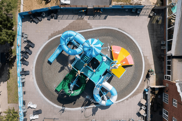 Det enorma utomhusvattenlandet var av förklarliga skäl stängt i oktober. Men oj, vad roligt det ser ut, och vår dotter frågade: "Pappa, varför är det egentligen stängt?".