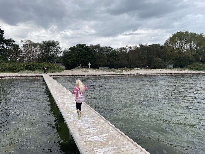 Därför var vi tvungna att testa badmöjligheterna. Inte heller här gör Bøsøre Strand oss besvikna. Vid slutet av badbryggan finns klart vatten och en härlig sandbotten.