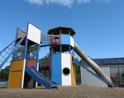 Vid campingens infart ligger informationen, minimarknaden, cafeterian och den stora lekplatsen ? som vi snarare skulle kalla ett riktigt lekland. Det finns allt ett barnahjärta kan önska sig.