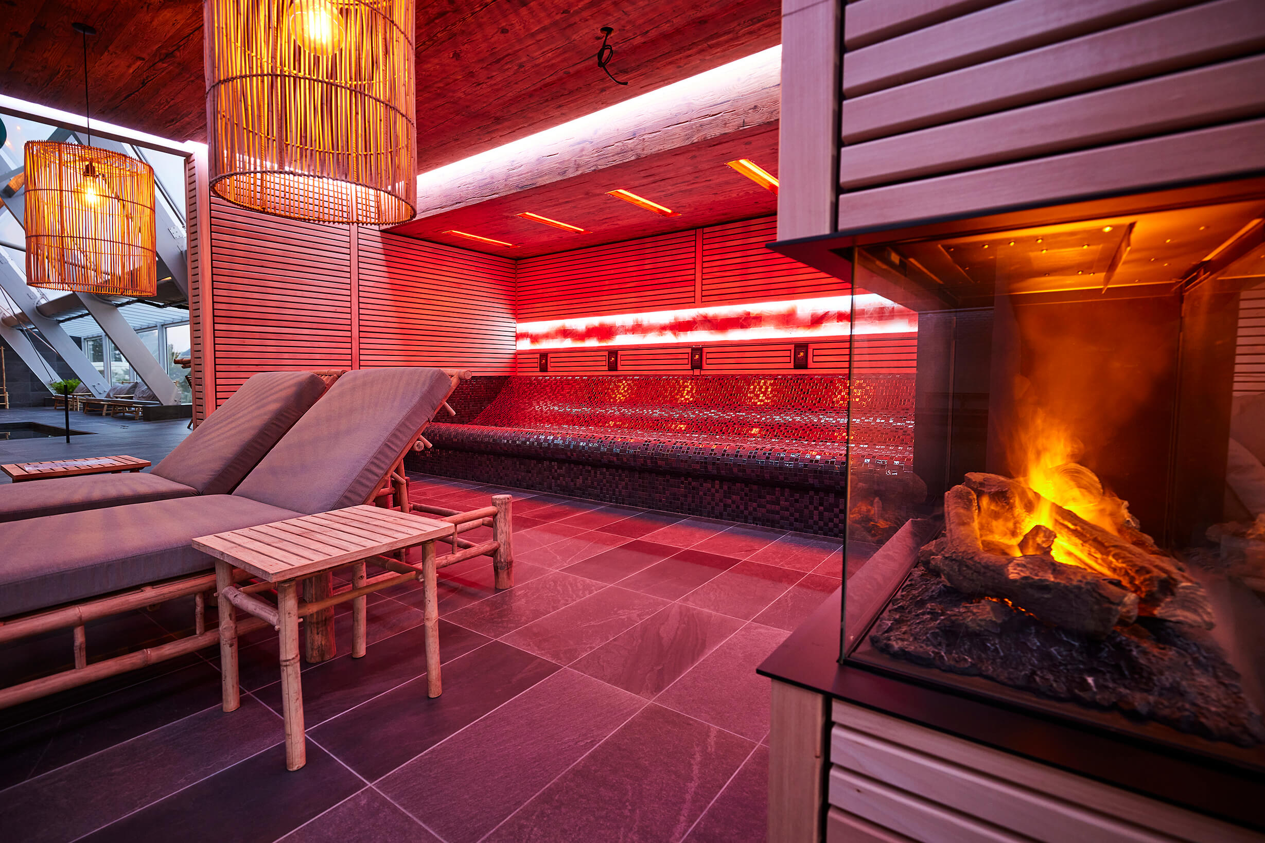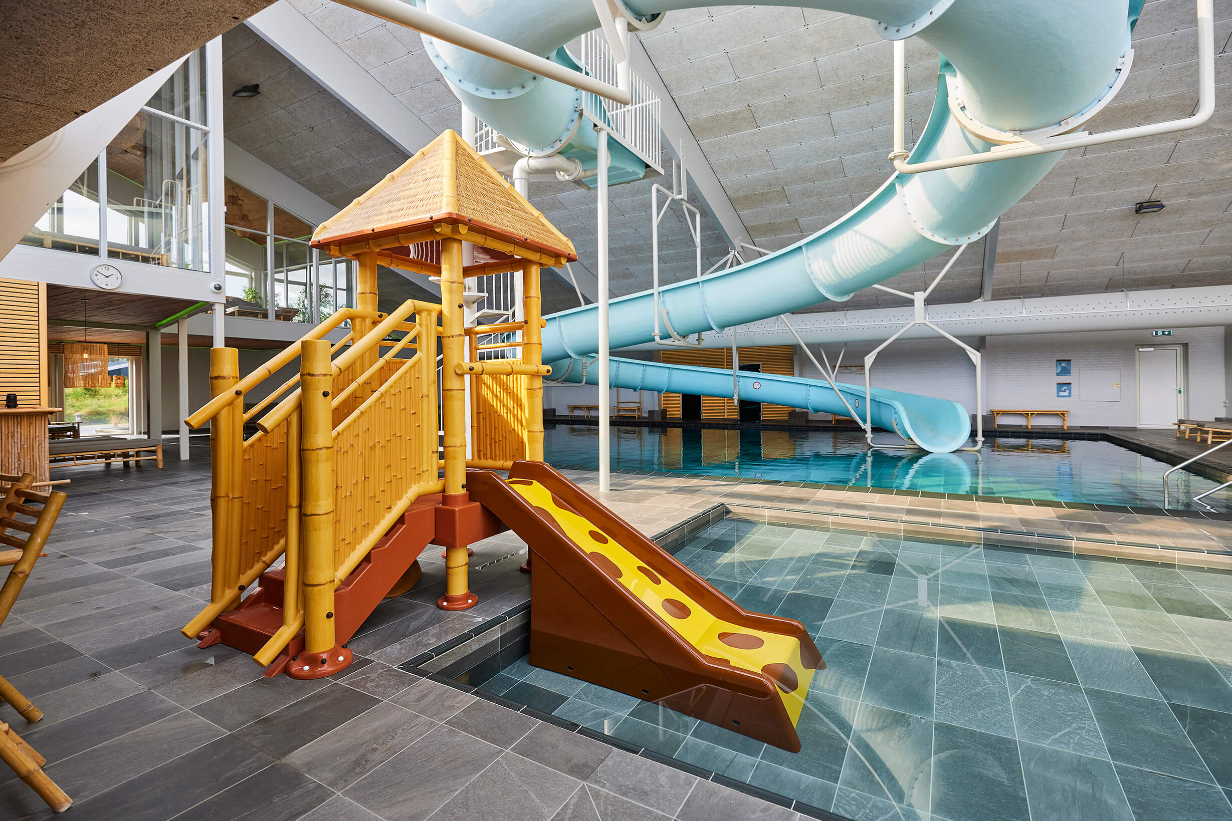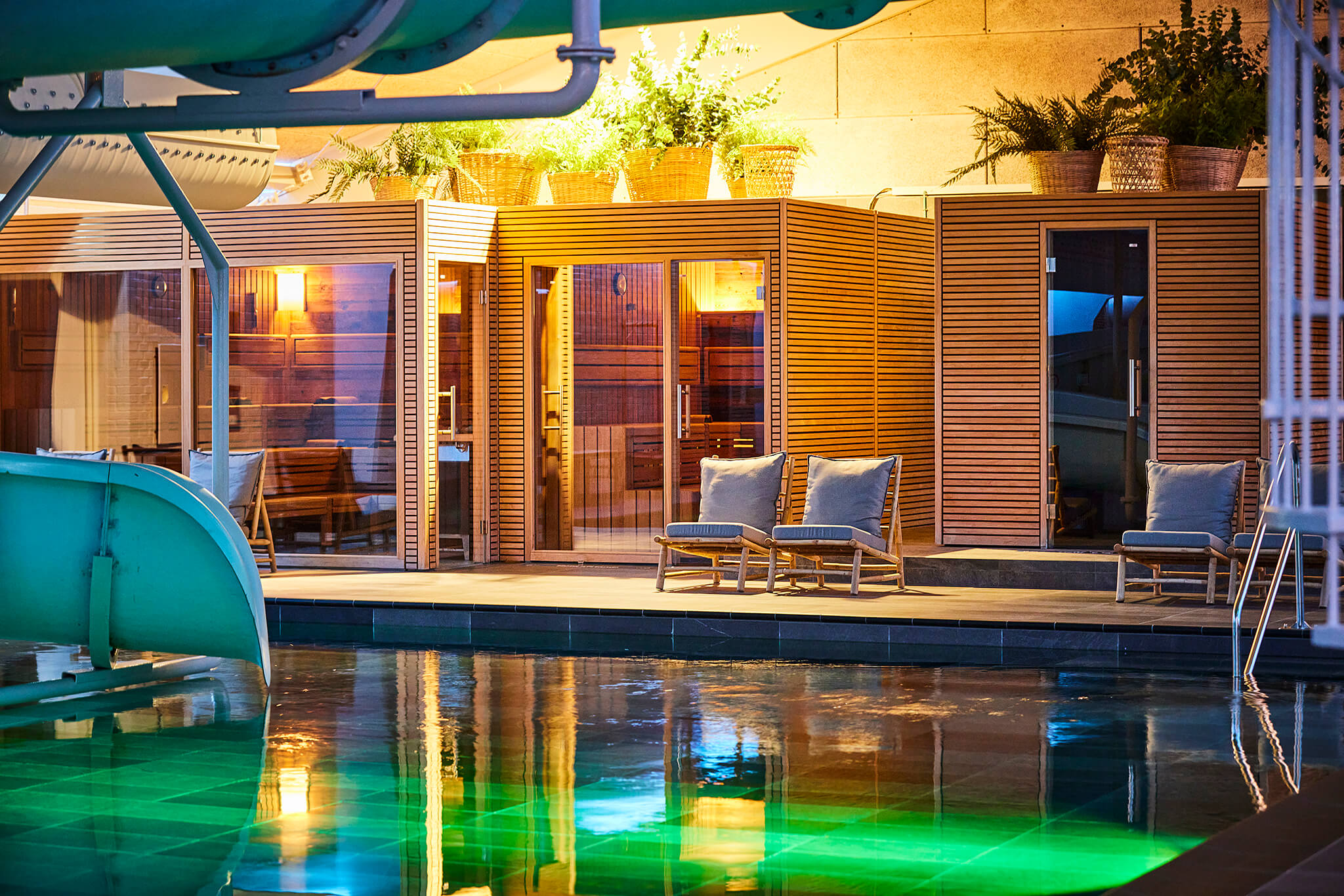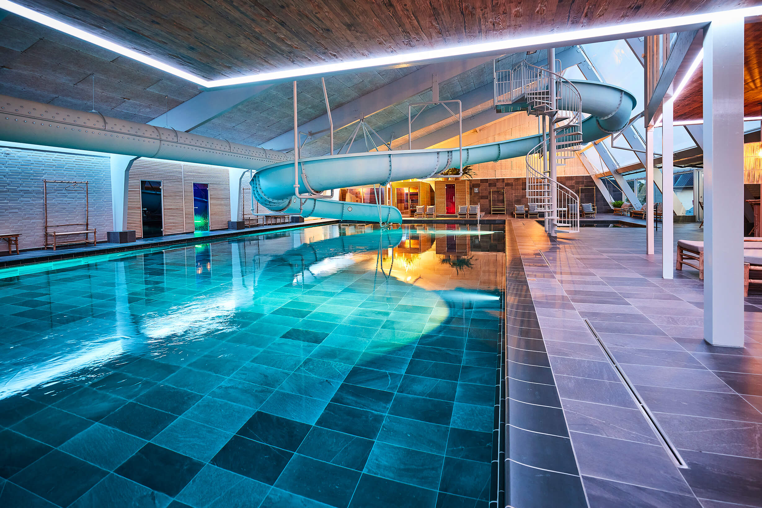 Inomhus vattenland med spa- och wellnessområde