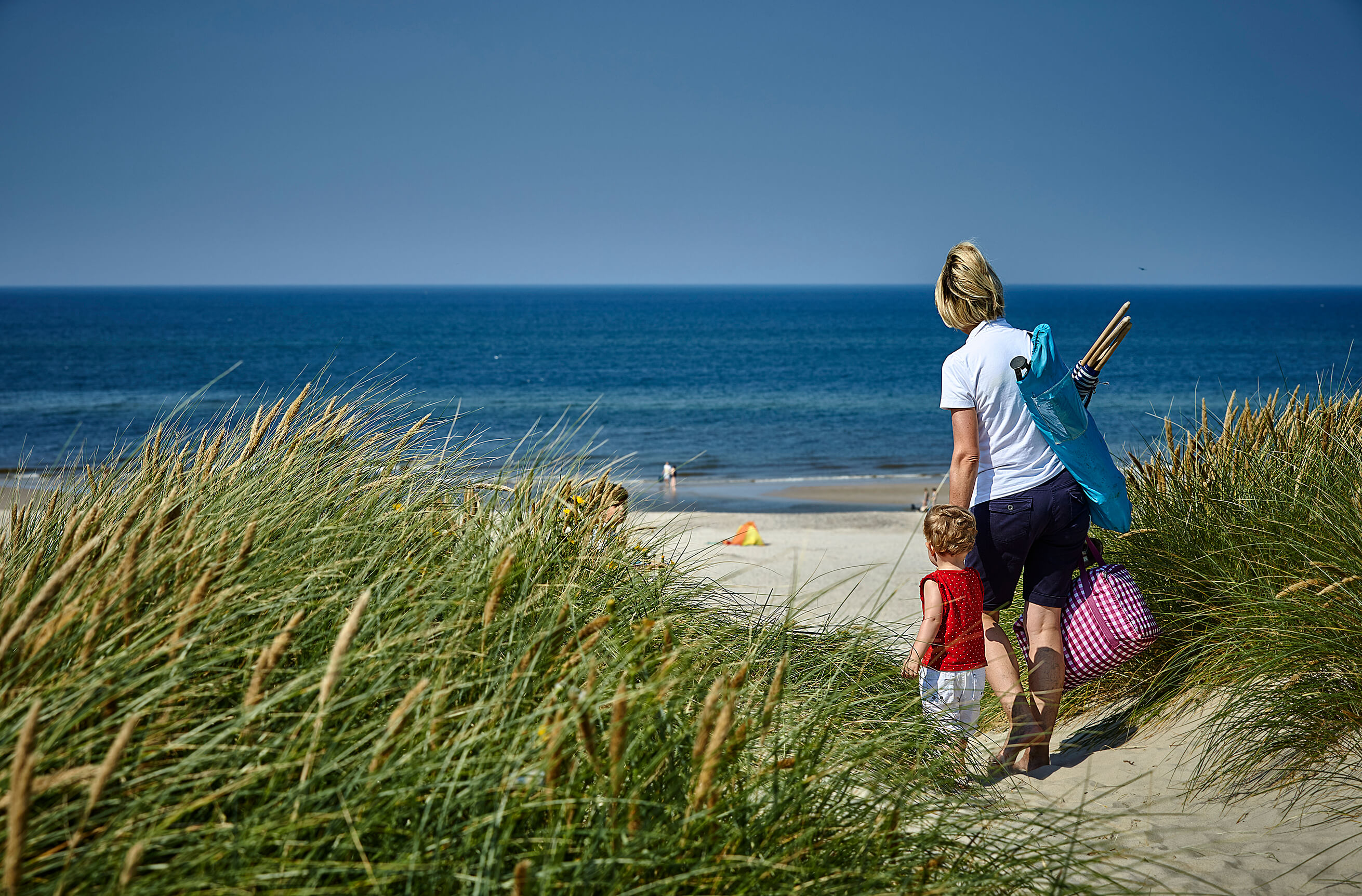 I slutet av gatan, på andra sidan de 25 meter höga sanddynerna, breder den vackraste vita sandstranden ut sig och Nordsjön visar sig i all sin prakt!