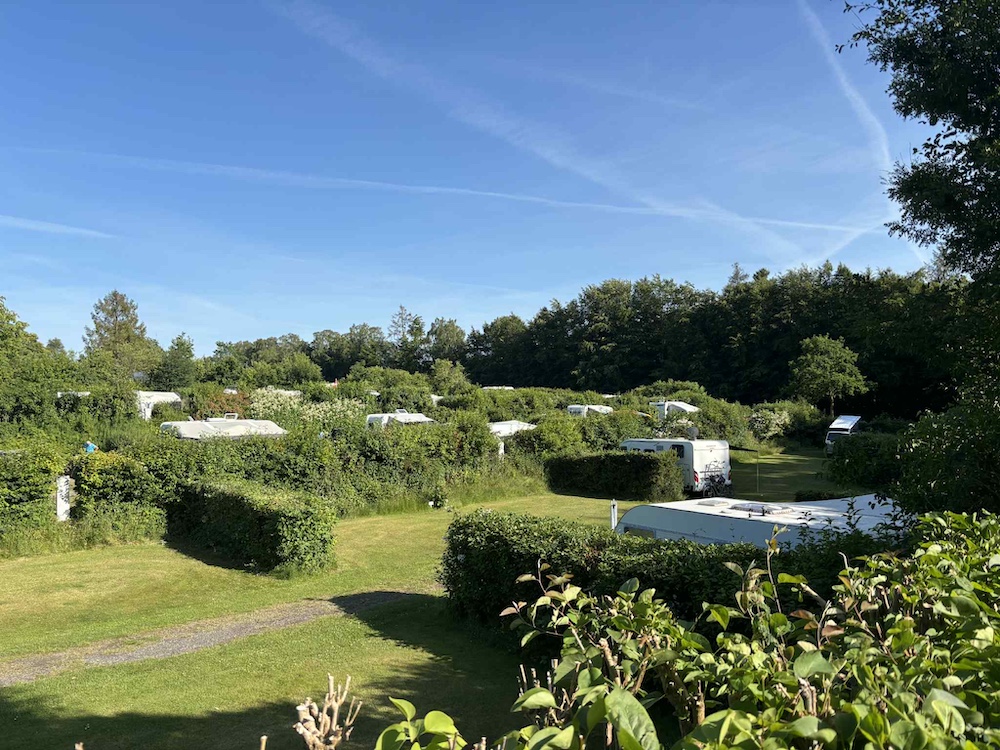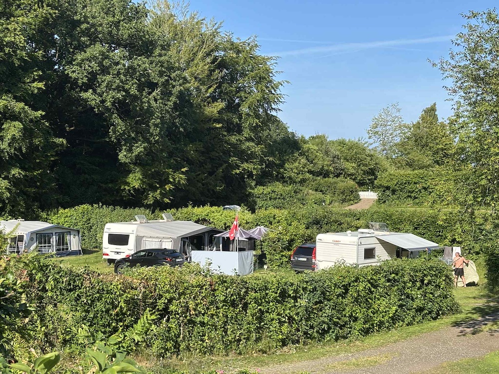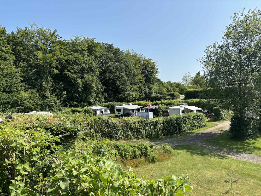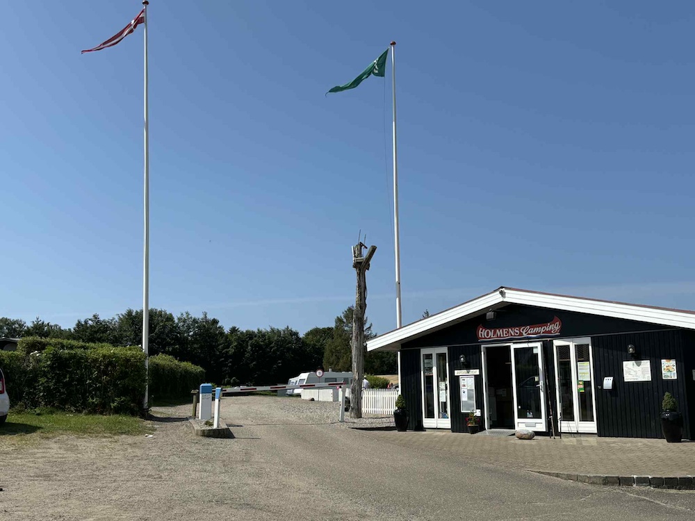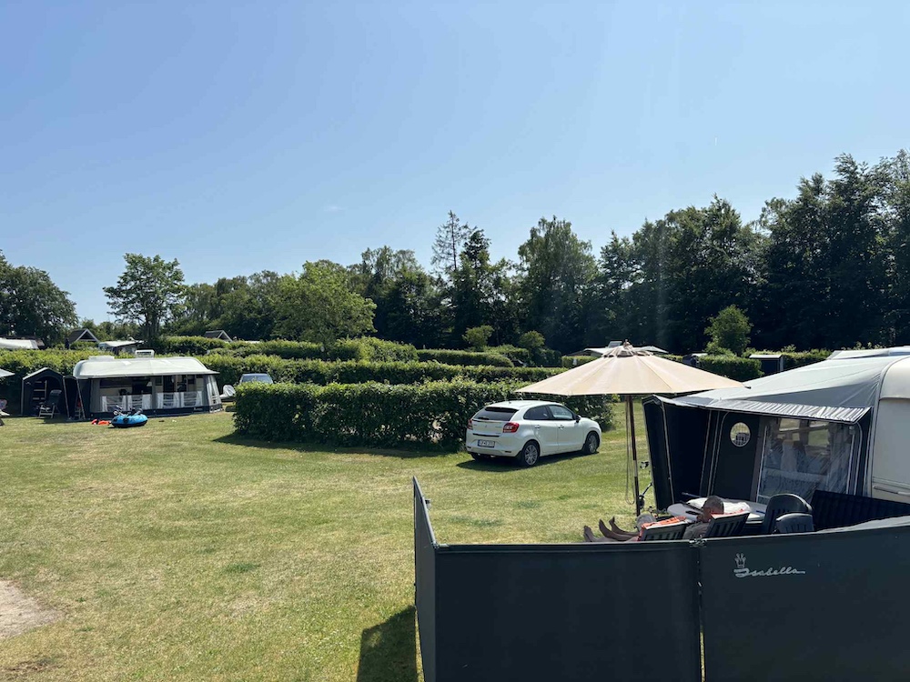 På en varm och solig junidag gick resan till Holmens Camping i Ry. Redan vid ankomsten blev vi mötta av campingvärdarna Tinne och Klaus, som med ett stort leende välkomnade oss och visade oss till vår plats.