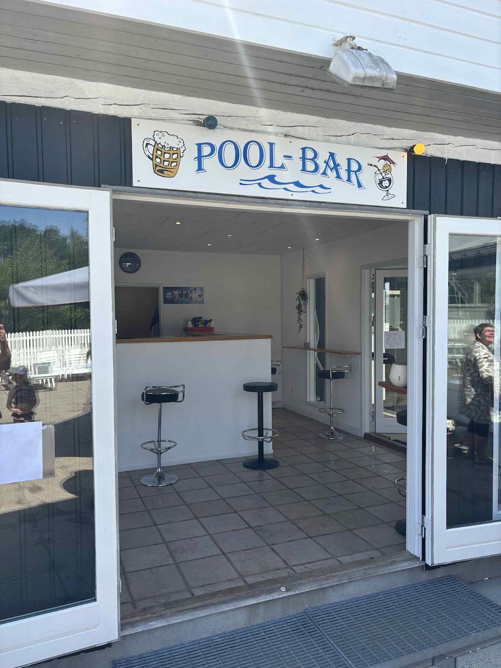 Om du inte själv vill hoppa i vattnet kan du slå dig ner runt poolen eller i poolgården, och det finns även en Poolbar med egna öppettider. Här kan du släcka törsten med en slush ice, en kall fatöl eller en läsk - och det finns även toast och andra lätta snacks på menyn.