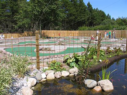 Den centrala lekplatsen ligger tillsammans med tennis- och bollarenan, men det är på campingens huvudtorg man hittar den nyanlagda och fina minigolfbanan. Här umgås campare efter en dag på stranden eller utflykten till några av områdets många sevärdheter.