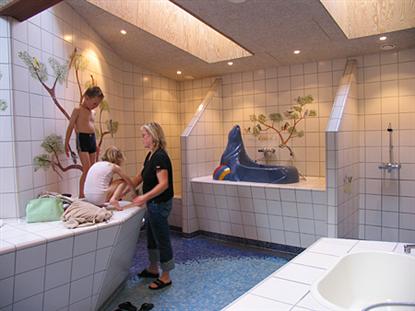 Campingens pool är uppdelad i tre huvuddelar: pool, bubbelpool och en rutschkana med nedfallsbassäng - och poolen är verkligen ett stort plus. Bubbelpoolen är inbyggd mitt i poolen, och en del av den stora poolen är "inhägnad" för de mindre.