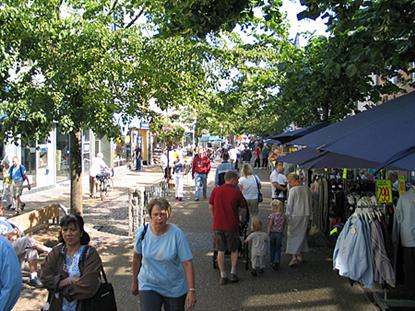 En kilometerlång och stämningsfull gågata sträcker sig från stadens hamn. Klädbutiker, caféer och specialbutiker ligger sida vid sida med det redan legendariska "Ritz" där de totalt tondöva Sussi & Leo nu uppträder efter brytningen med Skansen i Skagen.