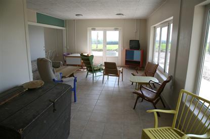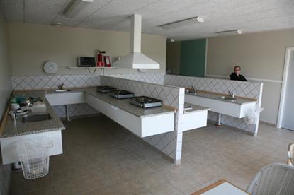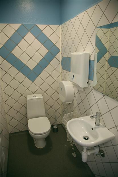 Servicebyggnaden är ny och fin, fylld med praktiska detaljer. TV-rummet är möblerat med gamla möbler av olika slag ? och det binder samman den nyuppförda byggnaden med det historiska området.